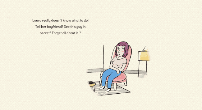 In Amour Libre – Free Love you take on the role of Laura, a young woman who has been in a relationship with her partner for 3 years. A few days ago she ended up kissing a guy at a party and she can’t get him out of their head. Should she just try to forget it? Should she try to see him again? Should she confess to her partner?