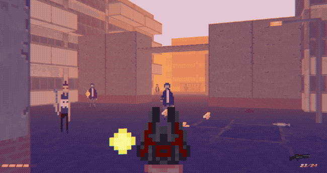 Blaster Cop is a wonderfully weird pixel art cyberpunk first person shooter that sees you playing a cyber cop who must infiltrate a criminal organisation that is selling illegal cyber stimulants.
