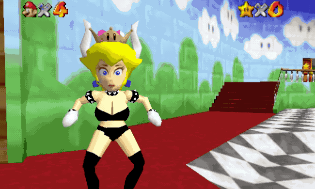 Bowsette in Mario 64 is a ridiculous (and inevitable) N64 rom mod that replaces Mario with Bowsette in Super Mario 64, complete with fire breathing abilities, big boobs and a kinky black outfit.
