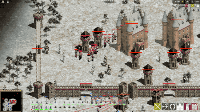 In Feudal Wars players choose from one of six different kingdoms (England, France, Teutonic Order, Castile, Venice and the Holy Roman Empire) then face off in real-time 1v1 battles. Each map contains castles which can be captured, giving you more money and troops. You can also build and upgrade barracks, archery ranges and stables which produce different types of units to use in battle. If you save up enough you can also build your own castles and to defend your castles you can build walls and guard towers.