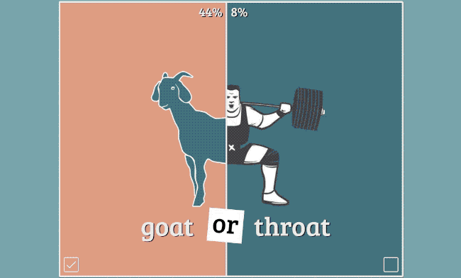 Goat or Throat is a delightfully silly browser based quiz game where you’re given a selection of screaming sounds and tasked with guessing whether they’re goats or athletes!