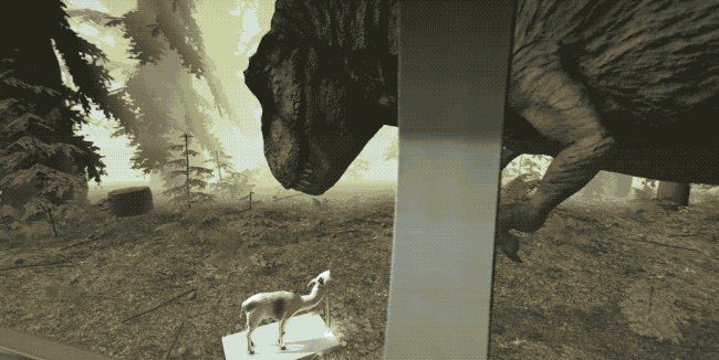 In Jurassic Explorer you can explore five different sections of Jurassic Park – the Main Street, the Samsung Innovation Center, the Tyrannosaurus Rex Kingdom, the Mosasaurus Arena and the Indominus Rex Paddock. You can’t interact with much, other than a few doors and there are only two living dinosaurs that you can see (T-Rex and Mosasaurus), but there’s lots to discover and the attention to detail is incredible.