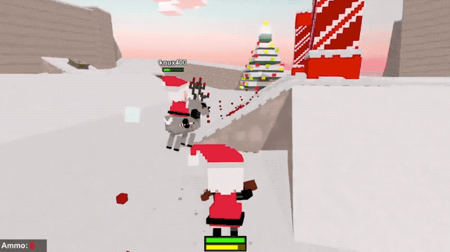 In Long Live Santa up to 20 players can do battle in fast paced battle royale combat to earn a Christmas dinner and to be crowned the next official Santa (after the old one died in a sleigh crash). Players start armed with just their fists, but can pick up Santa Swords and Candy Crossbows that drop from the sky, as well as being able to ride reindeer that they can charge at opponents with.