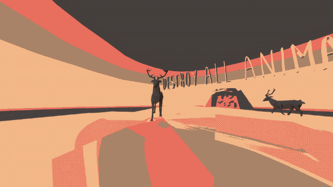 Nobody Wants To Hear You Scream makes for a rather unsettling experience as you venture out into a stylish high contrast, low poly world and start slaying animals. Obviously the animals don’t take too kindly to this and start fighting back – deer, giraffes, wolves and even penguins charge and shoot at you to try and take you down.