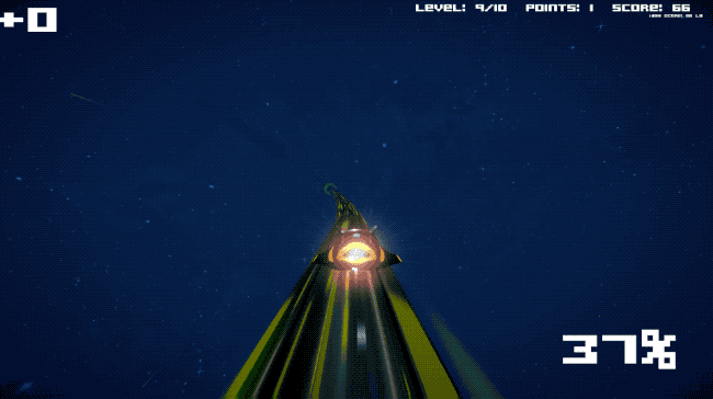 In Reactant you control a futuristic hovership that races at breakneck speeds along a series of twisty tubes littled with deadly hazards. It features 10 levels, each one with a different color scheme and a slightly faster racing speed. You start the game with three lives, but the life count carries over between levels – so is you finish a level with no lives left you’ll have your work cut out for you completing the next level. There are purple orbs that you can collect throughout the levels to replenish lives, but that also gets harder and harder to do as the speed increases.
