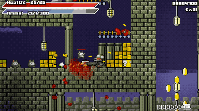 Controls: Arrow Keys – Movement, X – Jump, Z – Pick-Up/Use Weapon, Spacebar – Drop Weapon