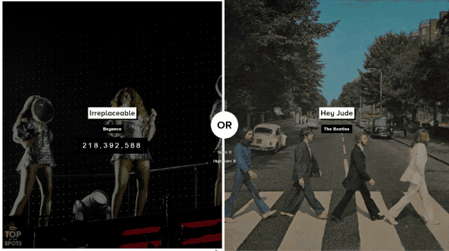 Top of the Spots is an addictive browser based quiz game that tasks you with guessing which songs have had the most plays on Spotify.