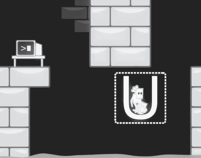 As you make your way through the game you’ll come across outlines of boxes you can then press a key on the keyboard and spawn the corresponding letter into the game world, creating a structure you can use to overcome obstacles. There are lots of clever variations of this theme as you make your way through the game world that can require you spawning multiple letters or even destroying letters, but it still revolves around figuring out the correct letters to use to aid your progress.