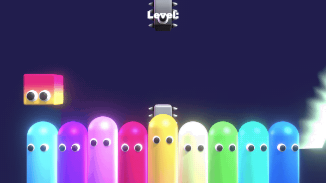 The single screen levels of Wave For Me look fairly simple, with you just having to move a cute little box from the left side of the screen to the right without hitting any hazards. However you don’t have direct control of the box – instead you control the ten little colored fingers beneath it. Each finger is mapped to the 1 to 0 keys on the keyboard, with them jumping up whenever you press them.